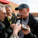 and Kasey are all dogging Denny pretty hard. JPM’s crew is advising him to save the splitter. JPM just did a power move ahead of Kurt Busch. Gorgeous! Kasey just went pas Kurt also. JPM just took the lead from Denny. Kurt is dogging Kasey pretty hard. Kasey is battling Denny for second, but looks like he’s got it. Kasey is chasing JPM, who’s trying to pull away. Kasey is back in the lead at lap 175. Rick Hendrick has gone into the pits. Tire specialist Keith Weiss says its not the rear axle problem that showed up previously. The tires are fully inflated, so they can’t figure out what’s causing the tire problems Big Daddy and BooBoo have had. Jimmie feels like they’re making progress now. He’s in the sixth spot. Chad just went over to have a talk with Kenny Francis, most likely about pitting. Kenny Francis said this morning that he and Chad were going to have to work together on pit stops all day long (after a crew member walked into the hauler before the race and asked him if he’d seen who was pitting in front of them). Bradley K has moved up to seventh place, though his right side is a mess. Jimmie is