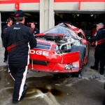 in fifth. Woof is in 13th. Spank is in 15th. Clint’s in 17th. Big Daddy is in 29th. BooBoo is in 31st. Carl is in 41st. Smoke is on pit road with 136 laps to go. Smoke said he thinks there’s a problem with the a side tire. Carl is going back onto the racetrack finally (134 laps to go). Kasey has led 73 of 191 laps. Tony’s tire has a big slice in the tire, which looked like Big Daddy’s tire. Seems to be a pattern with the Hendrick cars wearing out the left inside. Carl is back in on pit road. Jimmie may have a vibration. Carl said earlier (during the pre-race show) that if Jack Roush wanted to split he and Bob Osborne up they’d have to pry them apart. Carl says he doesn’t think their problems are Bob’s fault (after all I’ve won 16 races with Bob Osborne). He said Jack split them up once before and that didn’t go well. He started getting a little bristly about the subject and was holding back from saying Jack wouldn’t/better not split them up. Jimmie is in on pit road. He said the vibration had gotten much worse. 123 laps to go. Once again we’re within 10-15 laps of green flag pit stops. Mark Martin and BooBoo have hit pit road now. Jeff Gordon is off the pace like he has a problem. Bradley K is pitting off sixth place. His may be a scheduled stop. Jeff said he needs a new right front he felt like it was gone. When it comes off you can see it is having a problem. If wecycle through green glad stops the Hendrick cars are in good shape. Sam Hornish is in fourth ahead of JPM. That’s worrisome. Jamie Mc is on pit road, as is