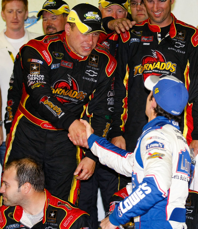 I have a feeling Big Daddy is going to be dejected again for not winning that race. Letarte seemed resolute and cautiously hopeful. I’m bummed for Stevie. I enjoyed Newman’s dive into the turn. Jimmie finished better than I expected, I think. I don’t know that I had a finish in mind for him, but I didn’t expect him to win this one. It just didn’t give me that feeling. I wish SpankBoy would’ve really backed up that outside pole start with a top five finish – but I know that’s asking a lot too.Â