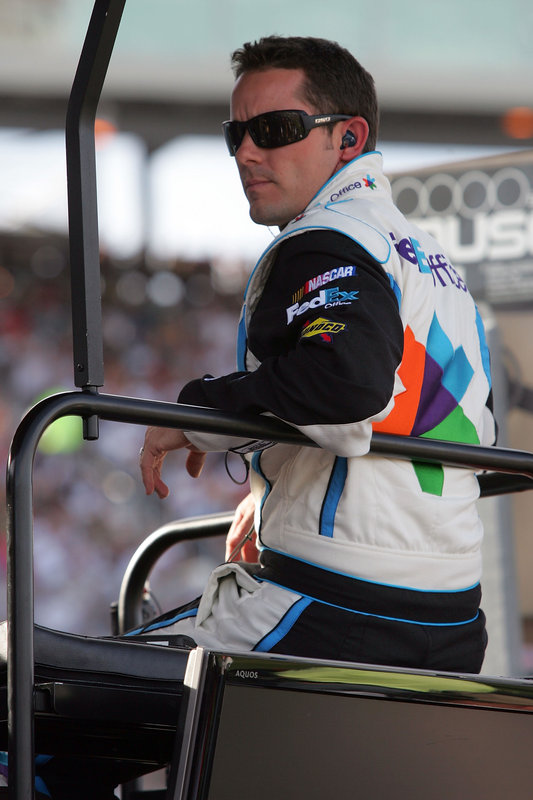 So this race starts an hour earlier and is 63 laps longer. I was wondering why. There’s been so much talk about shortening the races. Kurt Busch, of all people, answered the question for me.  Apparently the sponsor wanted an extra gimmick, so we now have the 600KM race. One good thing about the longer race is that they will have an extra pit stop so it won’t end up a gas mileage race, which is just ahead of short-track races in my book. Tonight is Elliott Sadler’s 400th career start. He’s been a part of the sport for 12 years. Yay Elliott!!! Jimmie said he doesn’t know what to expect, which makes me kinda hopeful. Jimmie rubbed Chani’s baby bump and Hermie said he wasn’t going to talk about Jimmie’s glasses, because the last time he did, she didn’t like it.Â