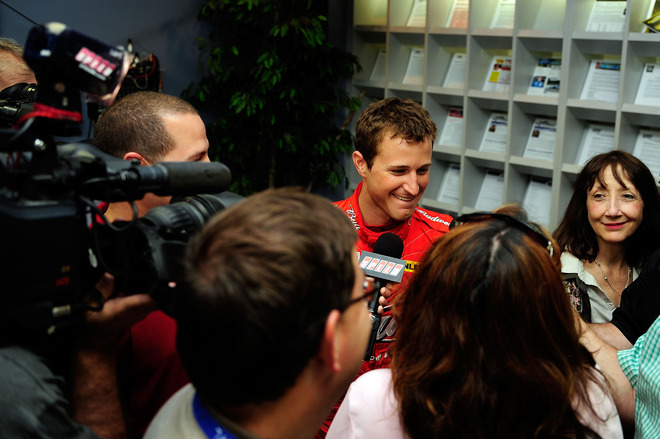 They (JR Motorsports) wanted to do with Kelly what they did with Brad. Â They consider what happened with Brad a total success. Â “We wanted to take a new direction.” Â Sponsors, like Hellmans, want stability, so that’s why they put Jamie Mc in the car . Â The last two questions are about Sprint Cup – does he think of his first win and his father when he comes through the tunnel (No, he doesn’t. Â He just listens to the dates and realize how long ago it was.) and when is he going to get a win. Â He says they’re still a couple steps away from where they can compete with guys like Jimmie for wins. Â After a handshake and a thanks the interview is over. Â I’m so glad Jerry did that interview – neither Jamie nor Shannon would be able to handle it like Doc Punch.