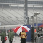 Steven Wallace says his special shoe for his foot is two sizes larger than his normal size – it’s a size 14 and he usually wears a 12. Â He says it has taken him a while to get used to it; in one race he thought he had his foot on the gas and it had slipped off. Â Steven’s brother must be his spotter, because Jamie mentioned that Steven had his father sending text messages to his brother and in the booth watching him, putting him under a bit of pressure. Â He said its the story of his life, his father is always watching him, coming by his house, calling him, texting him, he’s always there and he guesses its a pretty intense relationship. Â Then he kinda smiled and said, wehave a lot of fun. Â It sounds like Rusty is the nightmare father he seems to be. Â Steven says he doesn’t think they’re going to get the race in today. Â I believe NASCAR would be willing to go with a night race in order to get the race in today instead of waiting until another day.