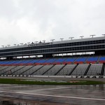 Nicole Brisco (nee Manske) is on the desk with Rusty, Pooh’s Pig and the guests. Â The format limits how much she’s speaking and she doesn’t seem to be speaking like she’s racing (and stumbling as heavily as she usually does), so, overall, this is the best performance I’ve seen out of her. Â I don’t know where the normal guy is, but I’m not missing him either. Â I like rain delays sometimes because there are times I get to see drivers speak about things I’ve been wondering about and sometimes I get to hear from drivers who usually don’t get to speak and sometimes its boring because the driver is not a good talker or I’m totally not interested in what they’re saying. Â Ricky Stenhouse Jr did a video piece trying to wrestle a steer and learning to rope. Â There are more drivers to come, so apparently NASCAR still hasn’t called the race. Â Brad just asked where are those rain tires everybody’s so proud of. Â That would be a nightmare! Â One of the fastest tracks on the circuit, rain tires, wet track, Ricky Stenhouse Jr, Jamie Mc in a car he says is hard to drive, 150 Wallaces (including broken-footed-Steven) and other newbies learning the ropes – frightening.
