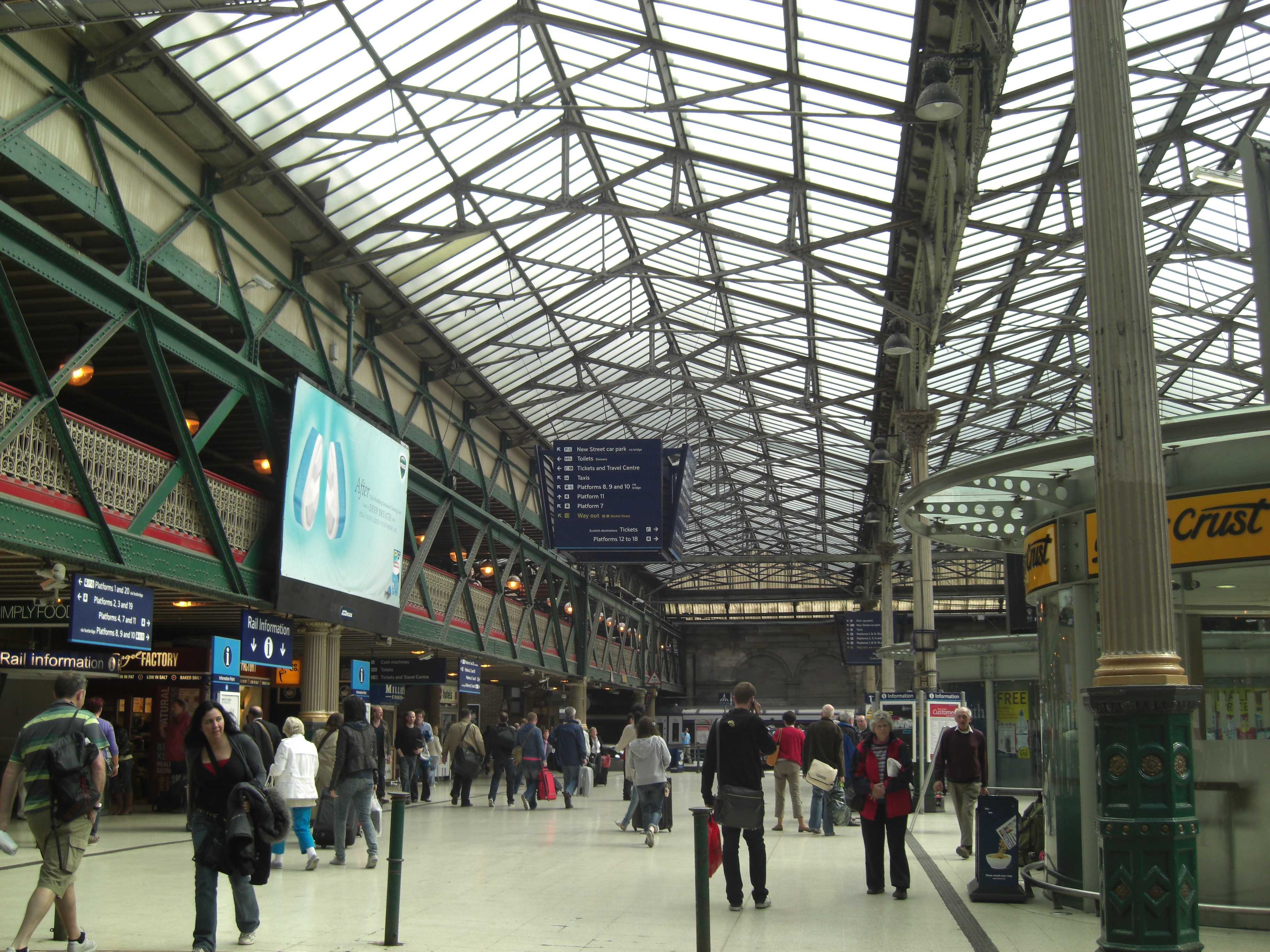 there was a massive electrical failure at Ditton) to those passengers. I left the train and watched the crowd on the platform which was the very definition of a milling crowd. We stood around for a while until finally there was an announcement over the station speakers (which was too faint for me to hear clearly) and everybody began moving away from the parked train. We followed the crowd and ended up at platform 6 where a train arrived shortly headed for Chester. We went to Chester, the crowd descended from the train and to track 1 to await a train to Liverpool. We were no longer traveling on the cushy Virgin trains with their shopping coach and first class cars, by the way. The trains we were now taking were a lot more utilitarian every time we changed. On to the Liverpool train which made about a million stops between Chester and Liverpool at all sorts of stations. The train seemed to stop in neighborhoods so the scenery was different, more houses than horses, which made the trip more interesting. When we got to Liverpool Lime Street station LiverPooh was craving Burger King and we grabbed a bit from what they had left and headed for the black cab. A quick bite to eat and some telly, then off to bed for us.