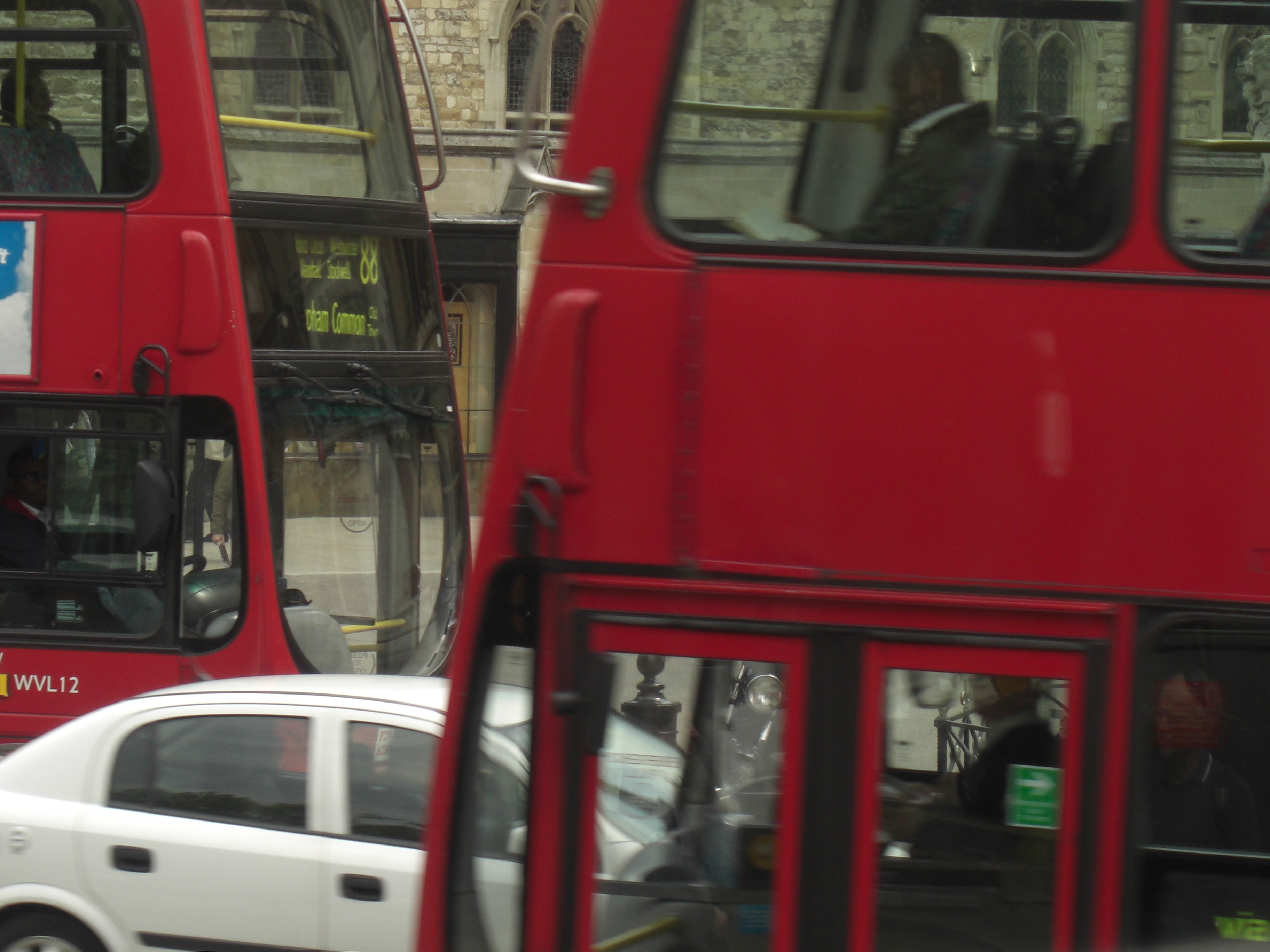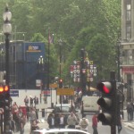 came back and we decided to walk in the direction from which the bus appeared to be traveling and saw the Hop On Hop Off stop a bit up the street. Hooray!!! So we got on a bus after being accosted by a Russian working for the bus company who was trying to get us to buy tickets to attractions like Madame Tussaud’s while arguing with a guy from another bus company and also working a deal with a tourist who’d just gotten off a bus and was making inquiries for a group of people who would apparently take tours later that day. LiverPooh talked to the Russian for a bit and considered his deals and I suggested she get on the bus. She mentioned to him that we wanted to see the changing of the guard. He told her it happened at 11:30 and it was already too late for us to see it. When we got on the bus she checked with Jimmie Johnson and learned it was only 10:10. (A beautiful shot of Jimmie Johnson is the wallpaper on her phone and she finds reasons to look at her phone throughout the day. I call it asking Jimmie Johnson for the time.) I teased her about believing a word the Russian was saying. Off we flew on a fast tour of London.