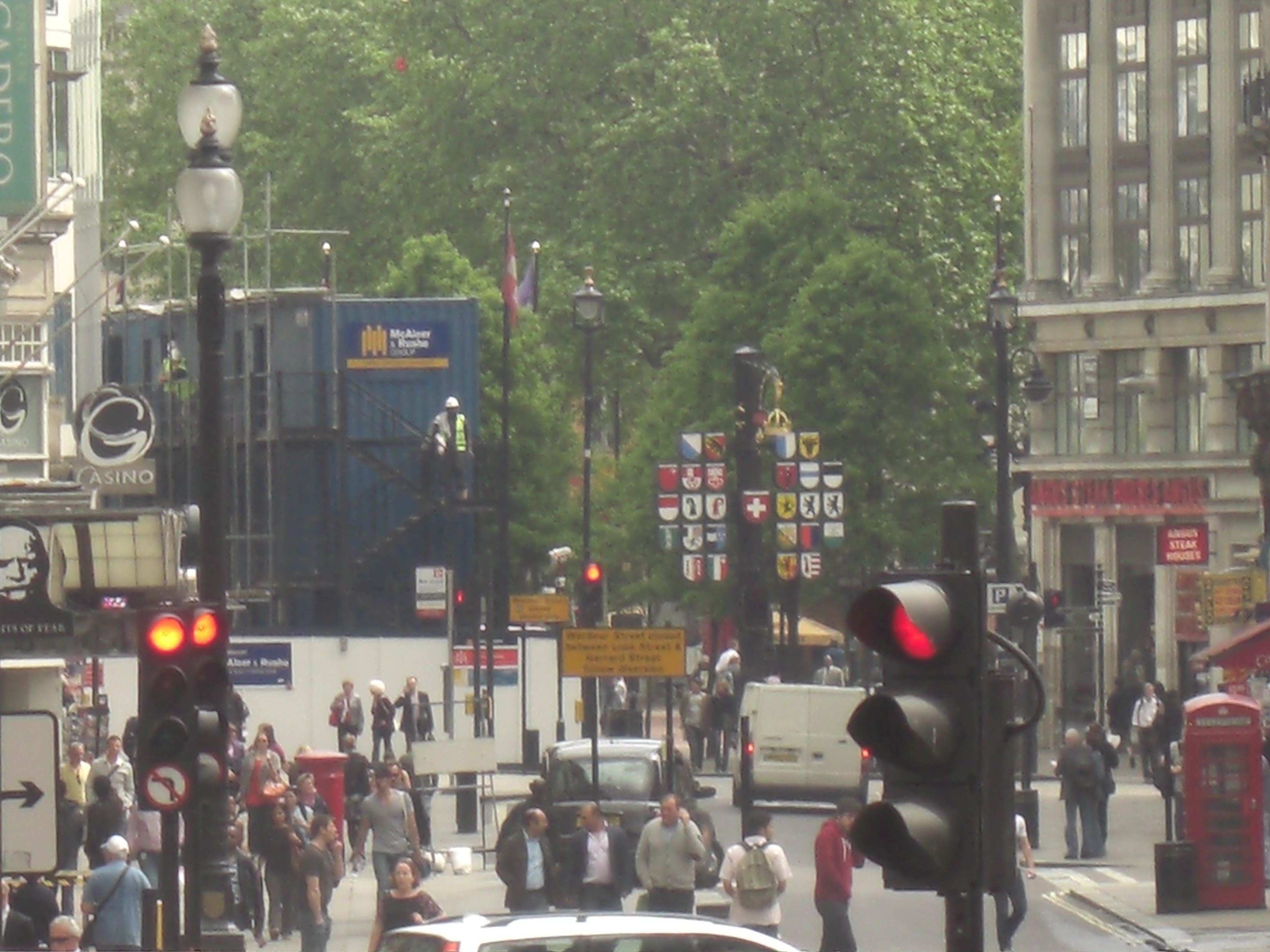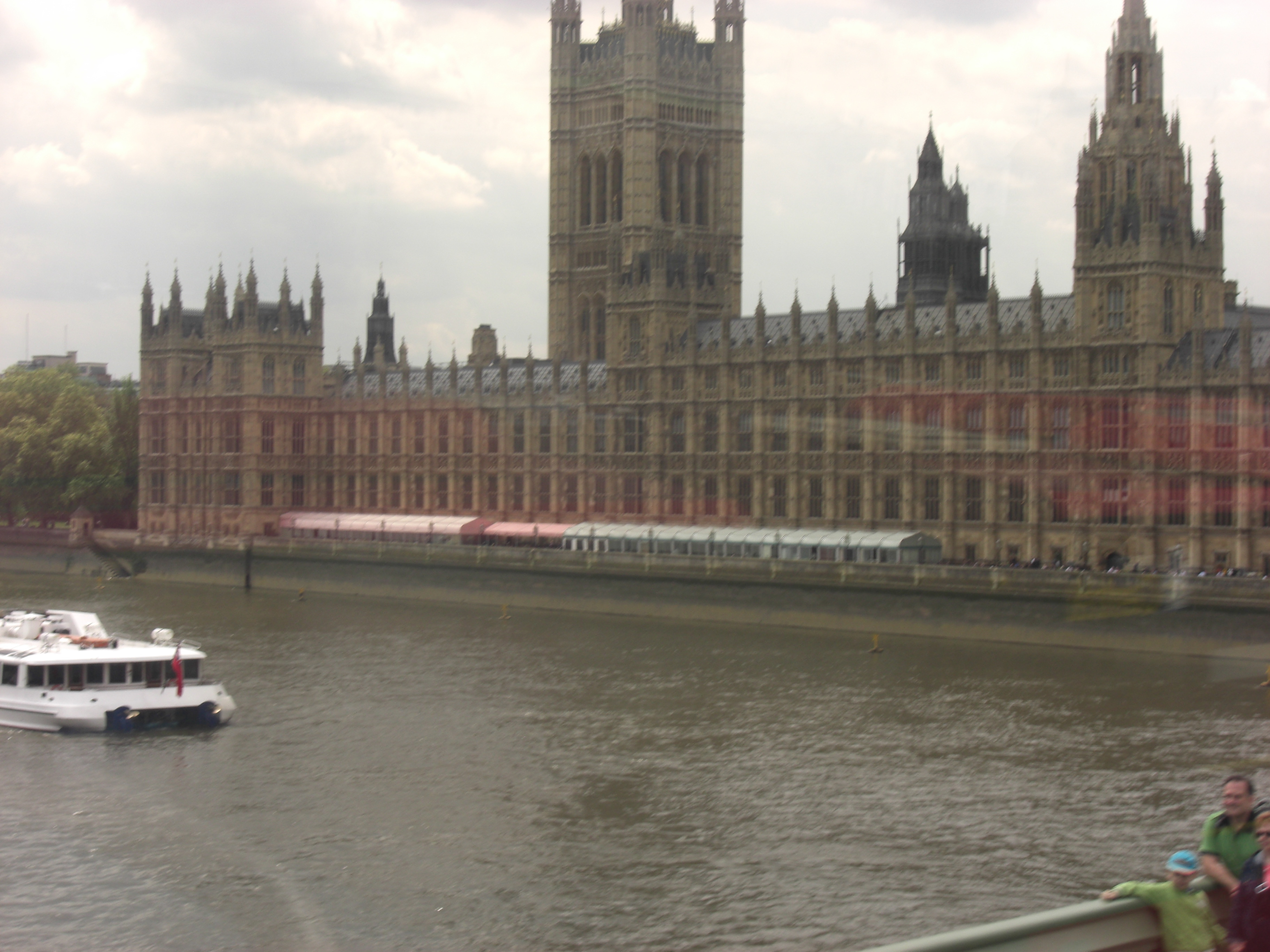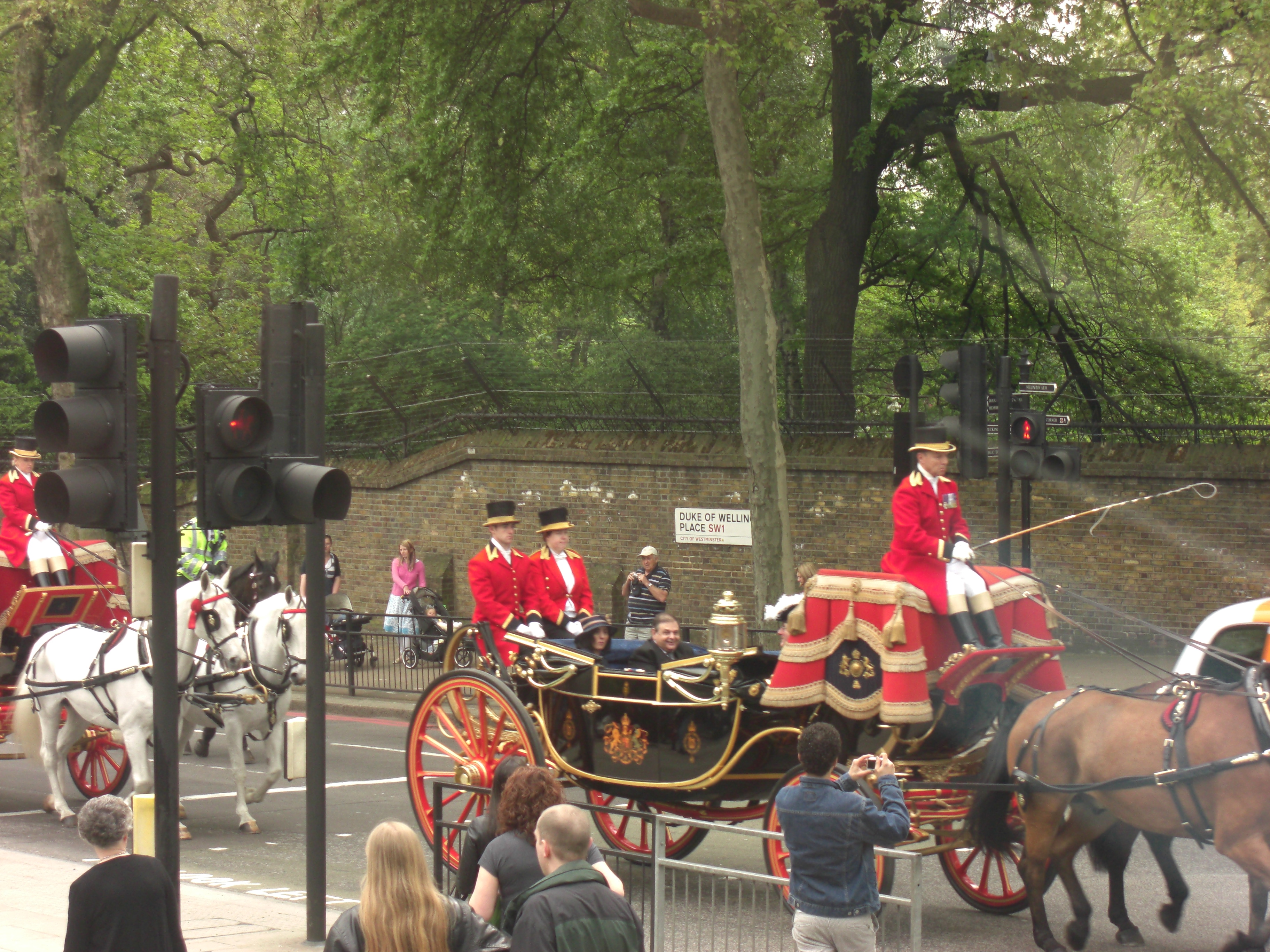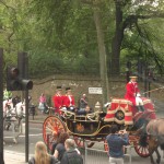 The driver was wheeling that bus like he was in a race. In spite of the rubber burning pace we saw more festivities in Hyde Park as someone was visiting the Queen and there was more pomp and circumstance included a mounted regiments in ceremonial garb. When the tour completed, we went around again to get to one of the joint stops which included buses to other portions of the city. The stop was near Leicester Square and we wandered to the square so I got to see the home of CapitalFM (my former favorite radio station) and everything else in the Square. It’s a gorgeous space and the parks in England make more sense than the parks here. The bus we took next included stops at Buckingham Palace, Trafalgar Square, Westminster Abbey, The Tower of London and a ride across the Thames. This tour had a live tour guide – Simon – who was funny and sarcastic and pretty knowledgeable. He went on a roll about Heather Mills that was quite funny. During that tour, all traffic was stopped while a classic Rolls Royce and two open horse-drawn carriages followed a police escort into the Wellington Arch in Hyde Park Corner. It was a kewl