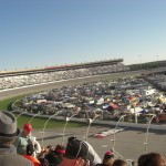 Eventually there was a caution. Most people around me were surprised and wondering why there was a caution. They had become so accustomed to nothing much happening, I don’t think anyone was paying close enough attention to actually see David Ragan’s spin. I certainly didn’t and had to wait for the replay on the Sprint Vision screen. By the way, the scoring pylon appears to have been moved for the race and it is in a much better location for people in my area and was a welcome addition to my race evening. It also appeared the Sprint Vision screen was moved over just a bit, resulting in the same helpful/welcome change. A restart was finally in the cards. Now, I have to say, I’m not a big fan of the double-file-restart-shoot-out-style (I cringe every time Larry McReynolds utters that phrase, and find that I hear his annoying voice every time anyone else utters that phrase), but a restart at least provided the opportunity for some action.