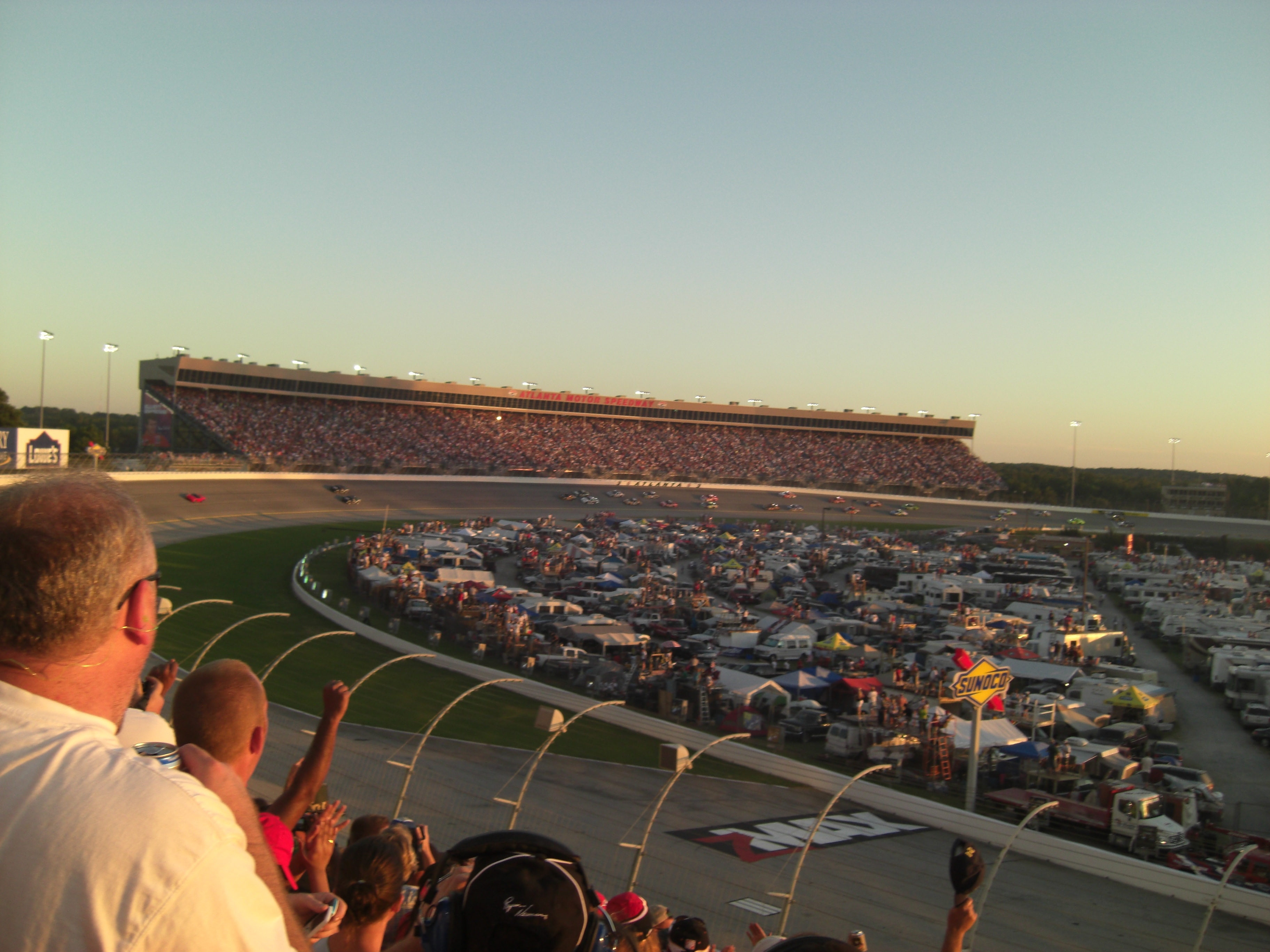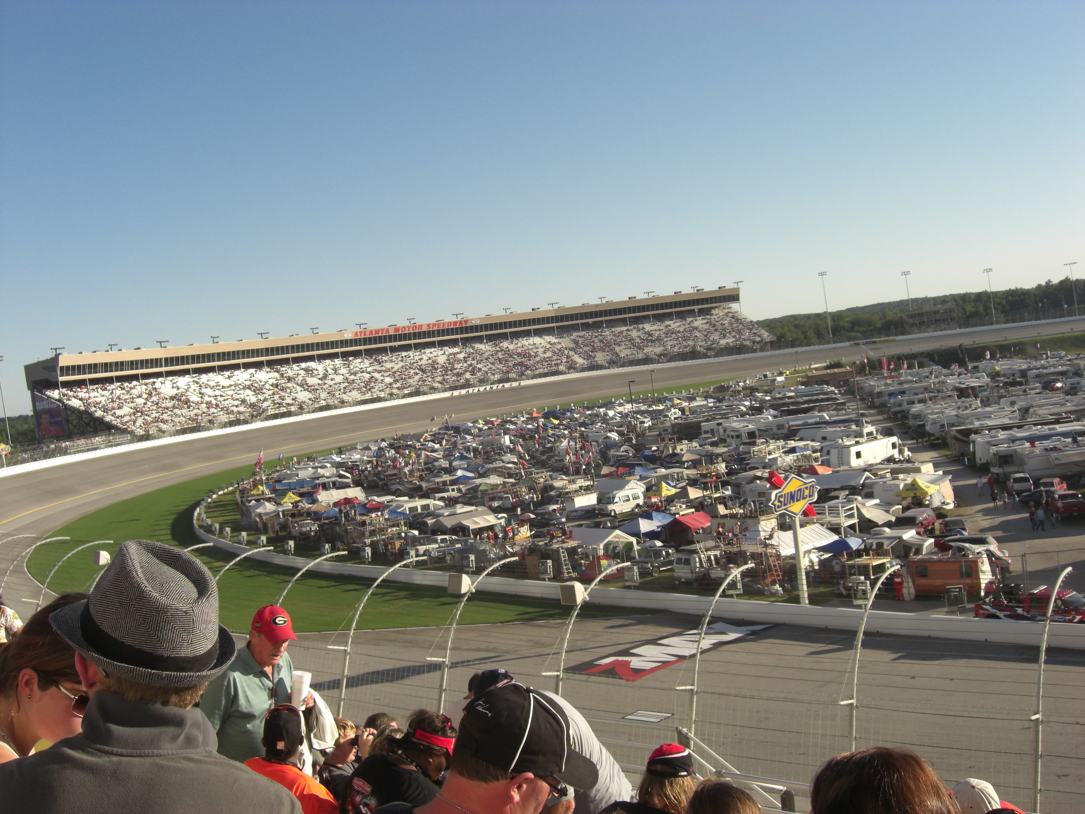 Atlanta Motor Speedway. Labor Day 2010. Blue skies, temperature in the mid 80s with a cool breeze wafting across the vast expanse of track, grandstands, parking and camping areas. What a lovely day for a race!