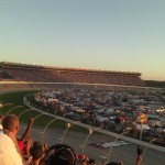 Traffic in to the track was lovely. We arrived a bit after 5pm, a few hours before race time. Our intention was to rush over to the trackside stage in an attempt to see, my husband, Kasey Kahne in the flesh. Unfortunately it was a day of retracing steps for us. It took us three attempts to get out of our neighbourhood and on the way to the race. Everytime we would head for the interstate one or the other of use would remember something forgotten or needed, resulting in our slightly late arrival. Granted we left the house an hour later than planned to begin with, and then once we arrived at the track we’d walked quite a distance when I realised I’d left the tickets in my bag, in the car – it wasn’t a great day for changing plans on the fly either. By the time we arrived at the actual gate, it was 6pm. I conferred with the artist formerly know as LiverPooh (aka Bunny D) regarding whether to find the Speed stage or to find our seats. I think she thought Kasey would’ve been on early and she was also suffering a bit from the heat of the walk – I keep telling her she’s grown up in Georgia, she should be used to the heat by now – so we headed inside. After buying the obligatory programs and some lovely Italian Ice, we lurked about in the concession area under the track; which was shaded and cool. Once she gave the okay, we headed to our seats. This is our third year of going to this race. So far, I’ve kept the same seats each year. I got them first year, because the nice woman on the phone selling the tickets said they were the best available (at that time). The seats are in the Petty Grandstand. They are not too high up (a bonus for Bunny D who hates steps) and close enough to turn four to see most of the wrecks there and close enough to the end of pit road to get a glimpse of some of the action there. Typically the people who end up with the surrounding seats are a friendly fun bunch.