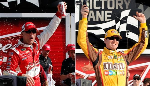 Kasey Kahne tries to run KyBu down, but Kyle Busch hangs on to win.