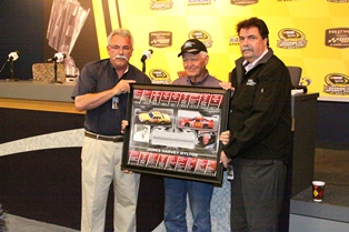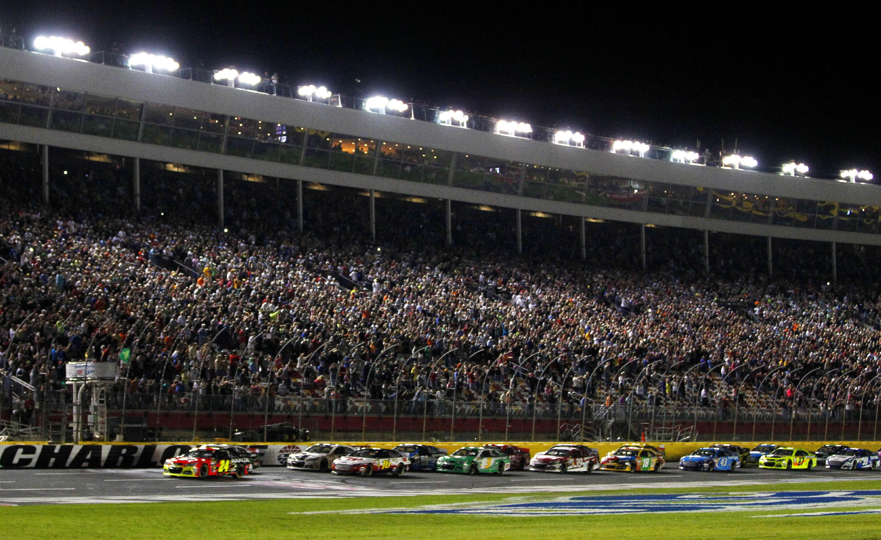 Sprint Cup qualifying was rained out so Aric Afterburner got the pole since he was the fastest car in practice. Jeff Burton is on outside pole.
